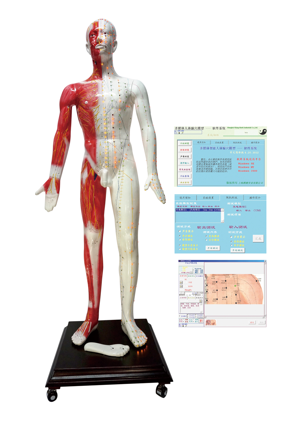 多媒體人體針灸穴位發(fā)光模型... 該系統(tǒng)融計算機(jī)技術(shù)、電子控制技術(shù)、多媒體技術(shù)、腧穴理論于一體;聲音、屏幕、人體模型同步控制筋絡(luò)腧穴的信息;顯示十二經(jīng)脈循環(huán)流注,經(jīng)脈絡(luò)屬表理對經(jīng)關(guān)系,特定穴的分布;加之屏幕表層、淺層、深層穴位解剖圖的配合,常見病的辯施治,隨證選穴的查詢及處理輸出,使學(xué)員對人體經(jīng)絡(luò)腧穴信息有更全方位的了解,更有利于加深印象與理解掌握;同時,亦可用于臨床與科研參考。
